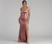 Create a head-turning moment in the gorgeous and chic Brooklyn formal dress. She features a sleeveless square neckline with a padded bust, adjustable spaghetti straps for a customized fit, front ruching, and a floor-sweeping A-line silhouette with a sultry front slit. Style this knit satin dress with sleek hoop earrings and heels.