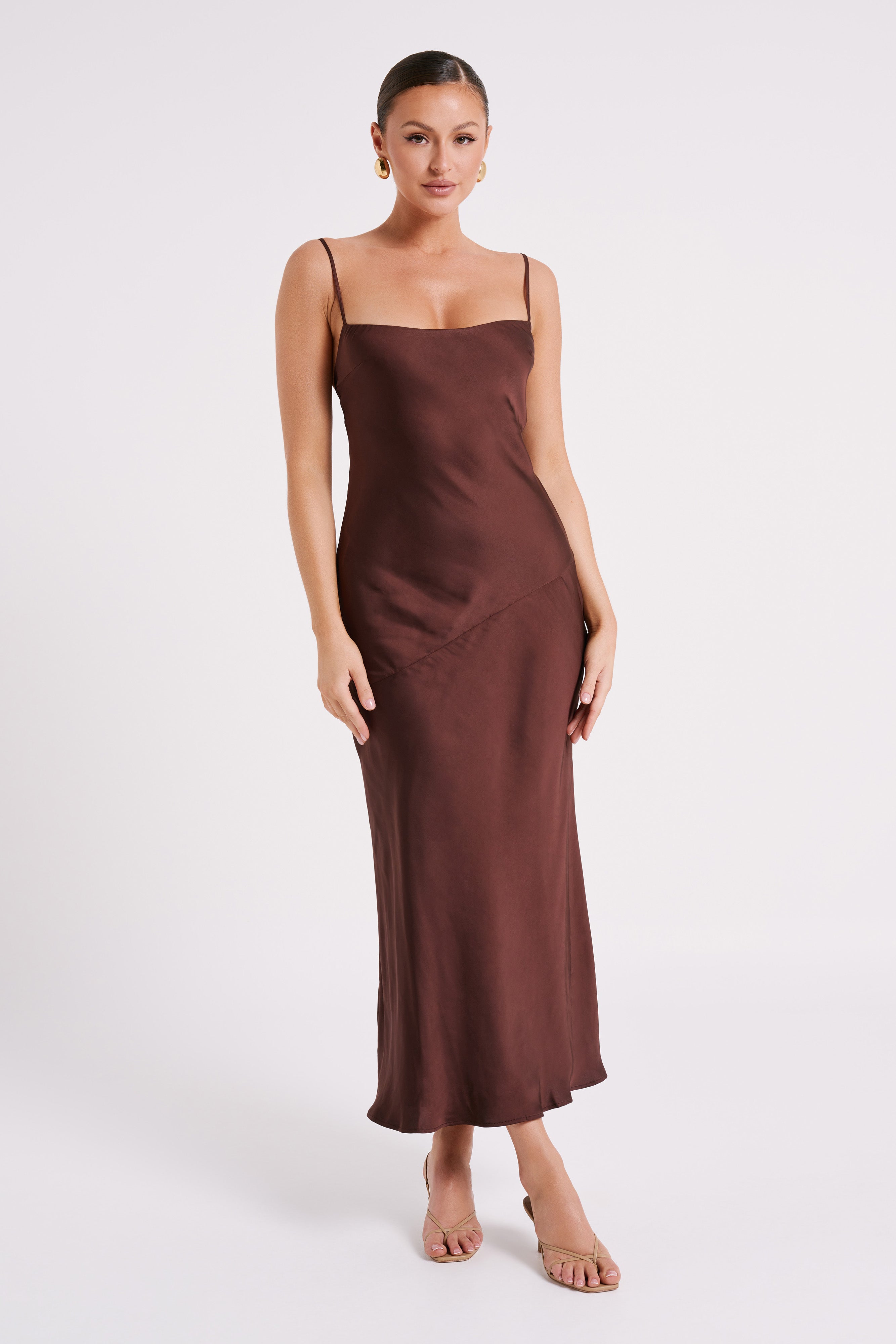 Expect second glances.BRYNLEE is a dreamy satin dress, adorned with elegant features. It is designed with a unique asymmetric seam line for texture and style. The low back neckline is also a personal favourite, allowing you to fully display your back and shoulders. The silky smooth satin offers a luminous sheen with a flowy maxi length. Secured with an invisible zip and adjustable spaghetti straps, you’ll instantly fall in love with its ease of wear and relaxed fit. Complete the sophisticated evening look with minimalist jewellery and the