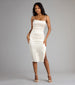 Striking in its simplicity, the Chelsea formal dress brings sleek confidence to any dress-up moment. Crafted in glossy satin with a form-hugging silhouette and side slit, this midi is made for the spotlight—with a square neckline that feels timeless yet fresh.