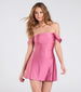 This satin mini dress will be your favorite for celebrations, events, and date nights! Sleek and smooth satin shapes this off-the-shoulder dress, which features a flattering A-line silhouette perfect for styling with heels.