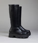 An absolute edgy essential, these faux leather boots elevate your outfit with a platform lug sole and under-the-knee length shaft, perfect for styling with jeans or a skort!