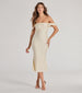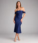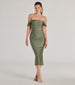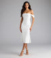 Every occasion is worth celebrating in this off-the-shoulder midi dress! The smooth and stretchy knit fabric includes a full-length knit lining for additional coverage. The off-the-shoulder neckline and short-sleeve cuffs add a touch of elegance, while the bodycon silhouette and flared midi-length hem accentuate your curves in all the right places. Complete the look with teardrop earrings and heels.