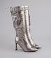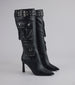 Steal the scene—these stiletto boots come strapped with attitude and storage. Perfect for late-night concerts or dinner with your crew.
