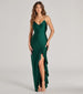 Bring the flirtatious flair to your fancy affair with the alluring details of the Lainey ruffled high slit long formal dress! Crafted from a sleek and stretchy knit fabric, she features a sleeveless V-neckline, bungee spaghetti straps that lead to a bold open back with a cross-back strappy design, a fitted bodice, a floor-length hem with a thigh-high front slit accented with a ruffled trim, and a slim-fit silhouette. Style this long dress with rhinestone statement earrings and metallic heels!