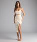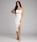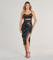 Chic and curve-hugging, the Lilith satin formal dress brings sleek confidence with its bodycon silhouette and sculptural details. A softly draped cowl neckline pairs with a striking cutout waist and wrap-front slit—because blending in was never the plan.