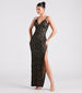 Bring the romantic allure to the evening affair in the Marylou lace mesh plunge formal dress! She embodies flirtatious style in a sleeveless plunge V-neckline with a built-in padded bust and adjustable spaghetti straps on her empire waist bodice. The sparkly embroidered lace mesh fabric effortlessly flows into a floor-length silhouette with a high-side slit to showcase some legs. She also features a curve-conscious silhouette to flaunt your stunning figure! Complete the look in an elegant hair clip.
