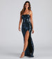Chic and glamorous, the Rowena sequin mermaid long dress will stylishly elevate your formal night-out look. With a lace-up strap design and fitted mermaid silhouette with a high slit, you'll deliver stunning style.