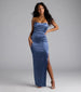 Cut from smooth satin fabric, the Shandra formal dress accentuates your curves with a form-hugging silhouette while adding a head-turning appeal with its lace-up back and high side slit.