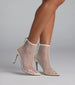 Experience the ultimate in sexy sophistication with these statement stiletto booties! These pointed-toe booties feature sheer fishnet adorned with sparkling rhinestones, adding a touch of glamour to any outfit.